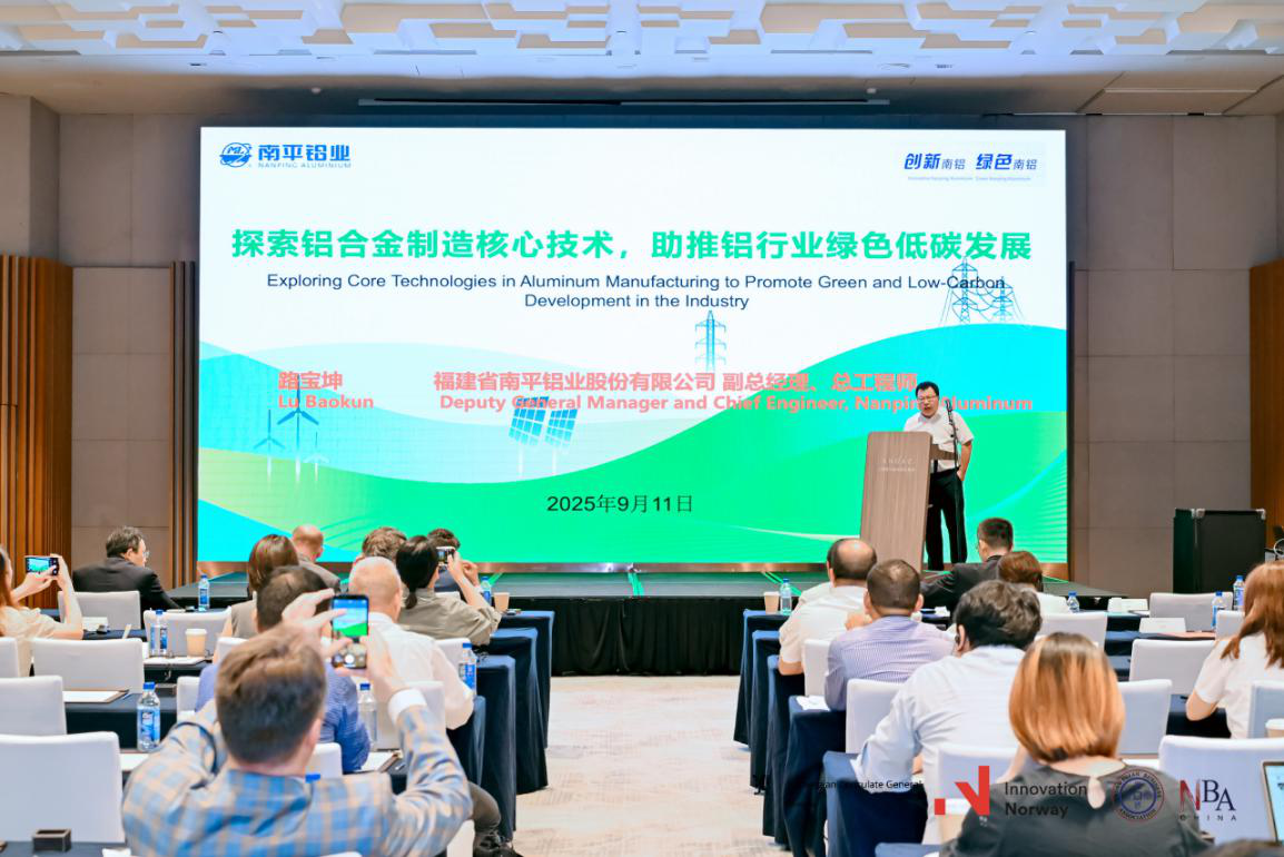 9月11日,由挪威駐華大使館、挪威創(chuàng)新署等機(jī)構(gòu)主辦的“2025共筑綠色未來:挪威-中國綠色轉(zhuǎn)型論壇”上海站活動(dòng)成功舉辦。來自上海政府、企業(yè)及創(chuàng)新領(lǐng)域的代表齊聚一堂,共同探討綠色轉(zhuǎn)型的前沿趨勢(shì)與實(shí)踐路徑,助力全球低碳經(jīng)濟(jì)轉(zhuǎn)型。南平鋁業(yè)公司應(yīng)邀出席論壇,公司副總經(jīng)理、總工程師路寶坤作題為“探索鋁合金制造核心技術(shù),推動(dòng)鋁行業(yè)綠色低碳發(fā)展”的主旨報(bào)告,分享了鋁加工行業(yè)在綠色轉(zhuǎn)型方面的實(shí)踐經(jīng)驗(yàn)。